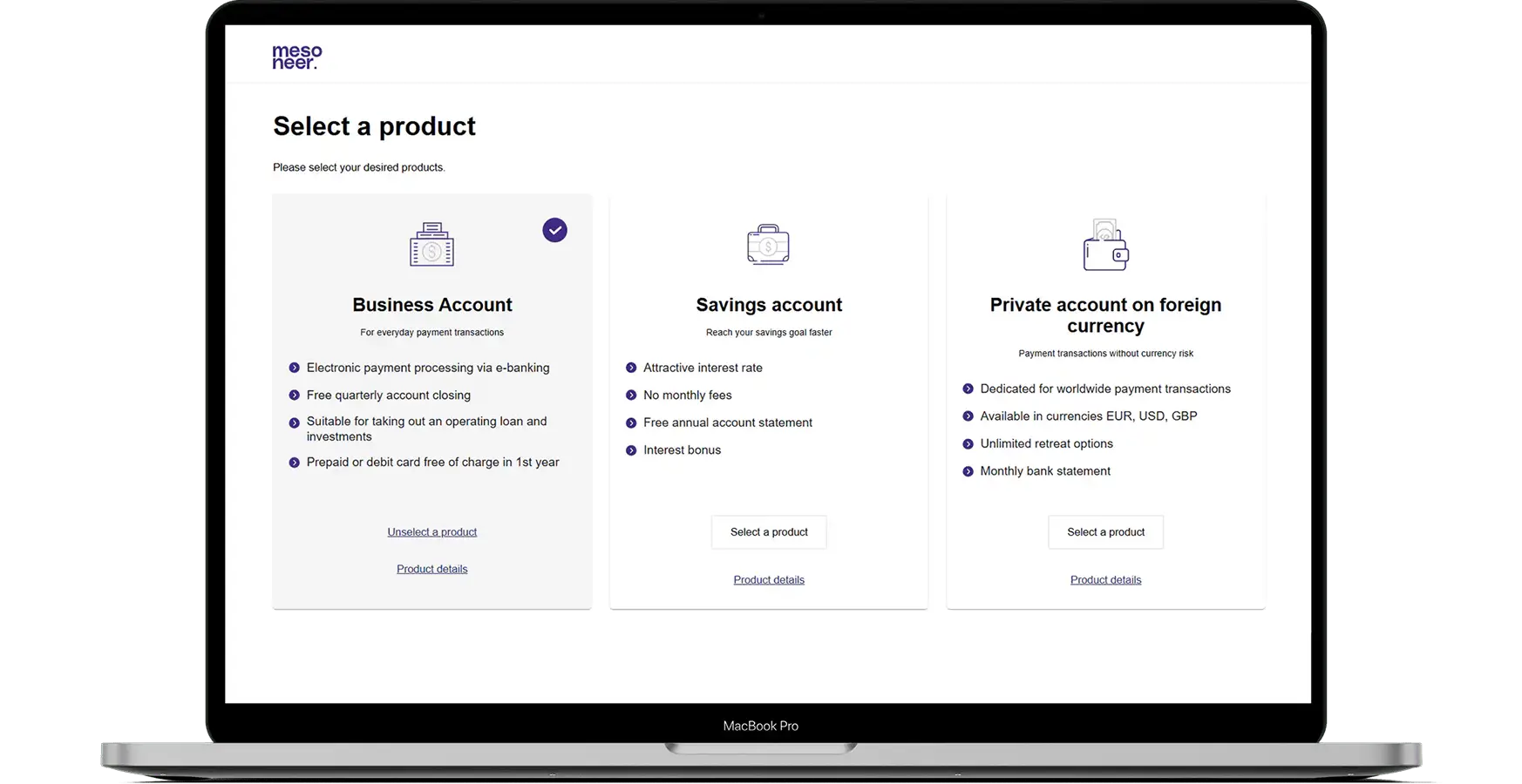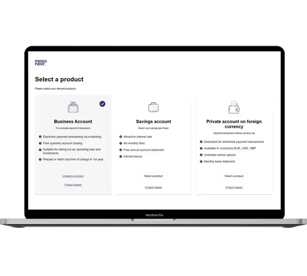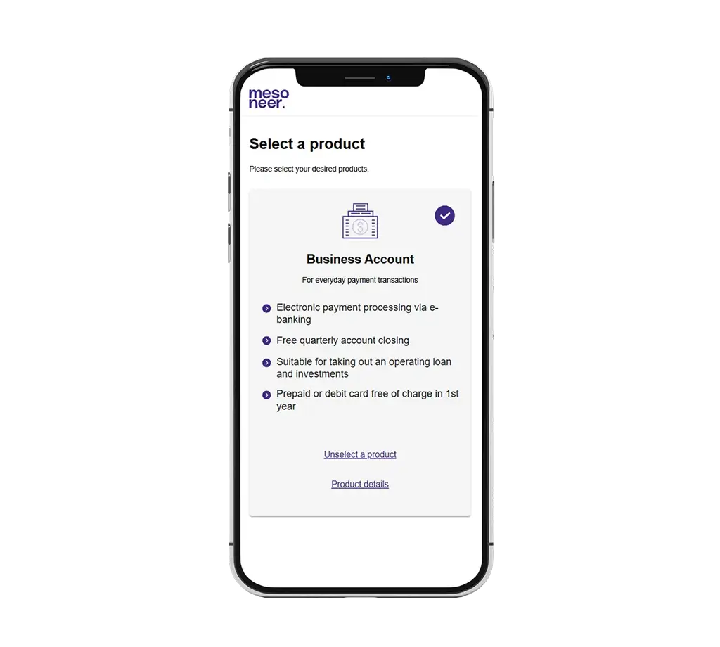 mesoneer's digital onboarding as a service is configured in no time and quickly ready for use – without the risk of a large-scale project.