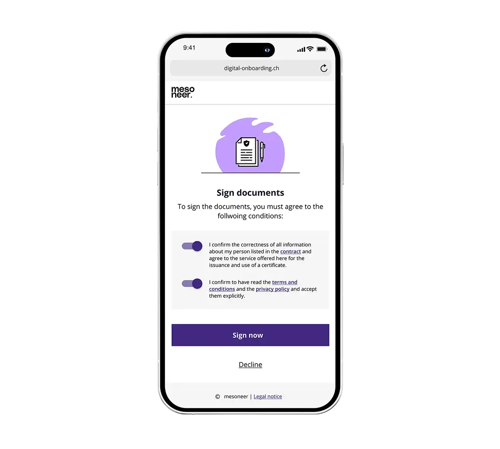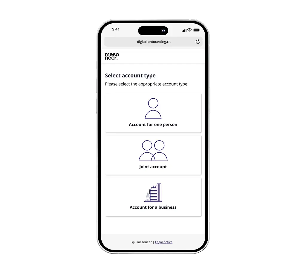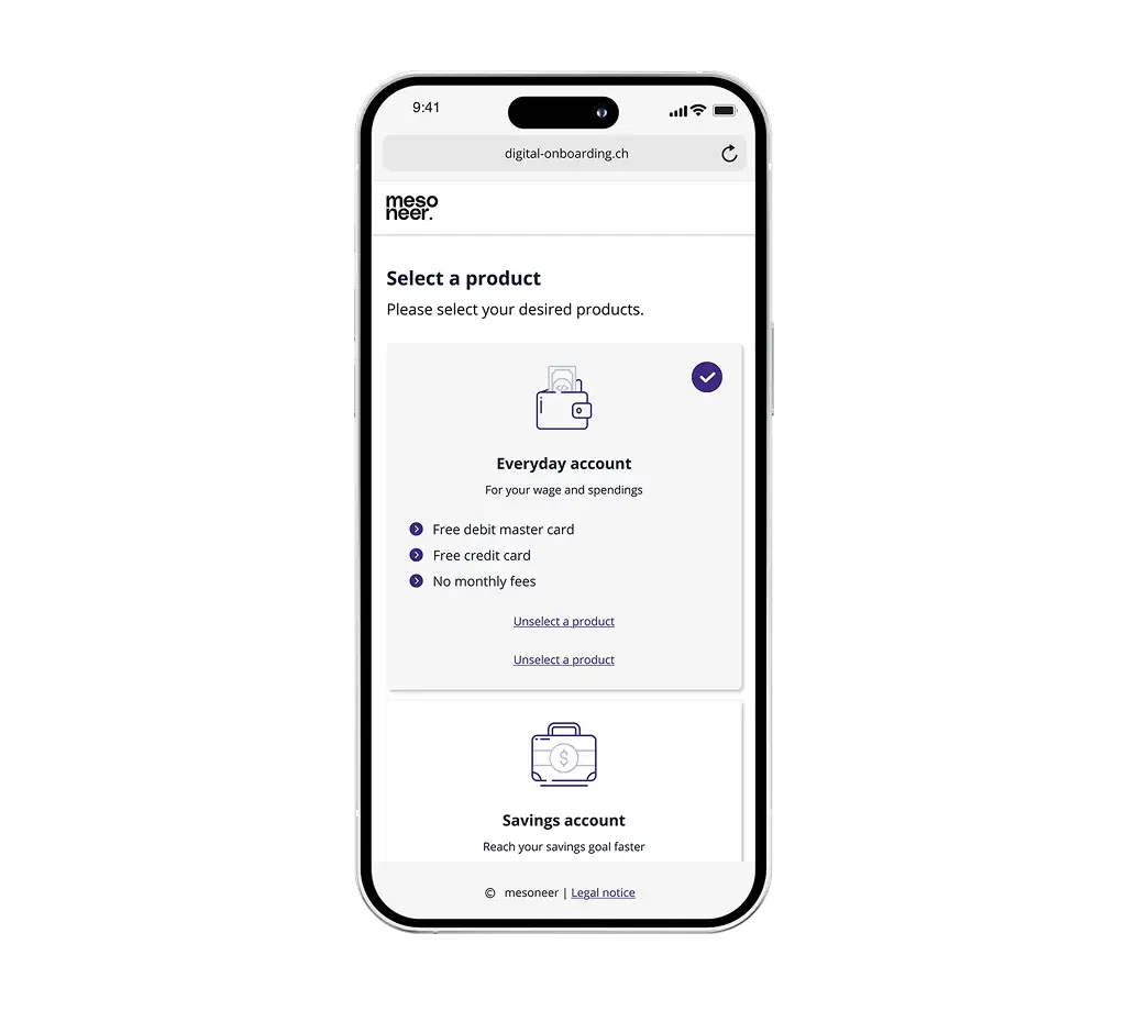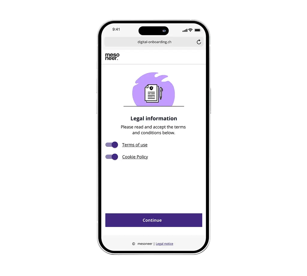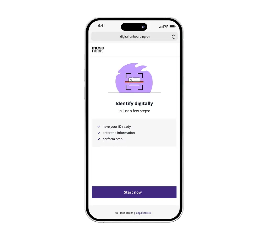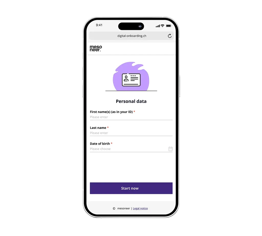 mesoneer's digital onboarding as a service is configured in no time and quickly ready for use – without the risk of a large-scale project.